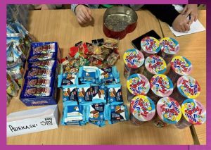 Podczas seansu, każdy uczeń mógł skorzystać ze sklepiku Samorządu, w którym do kupienia były: soki, woda, pizza, popcorn, tosty, wata cukrowa, wafelki i żelki. Zebrane pieniądze zasiliły budżet Samorządu Uczniowskiego.