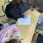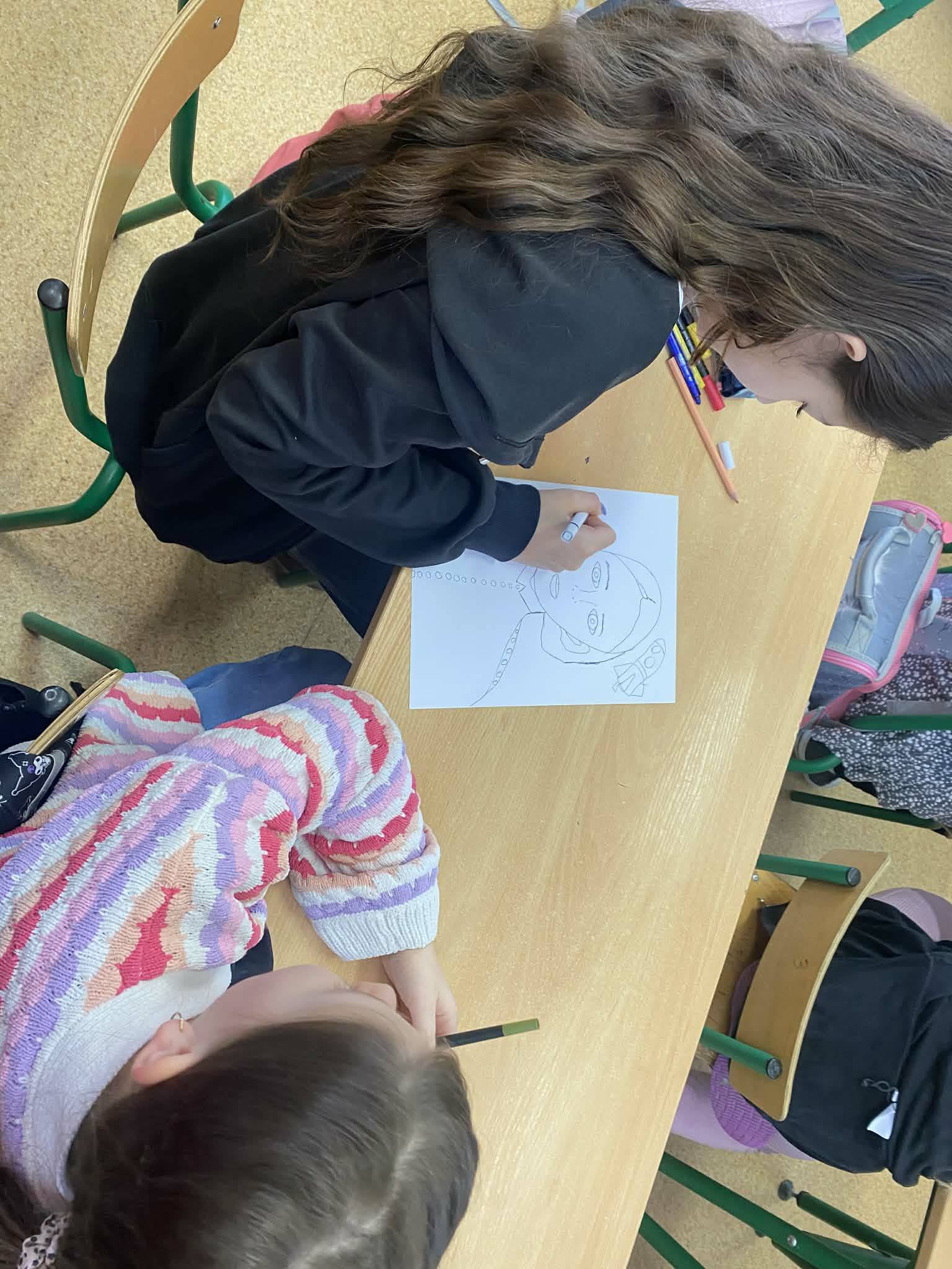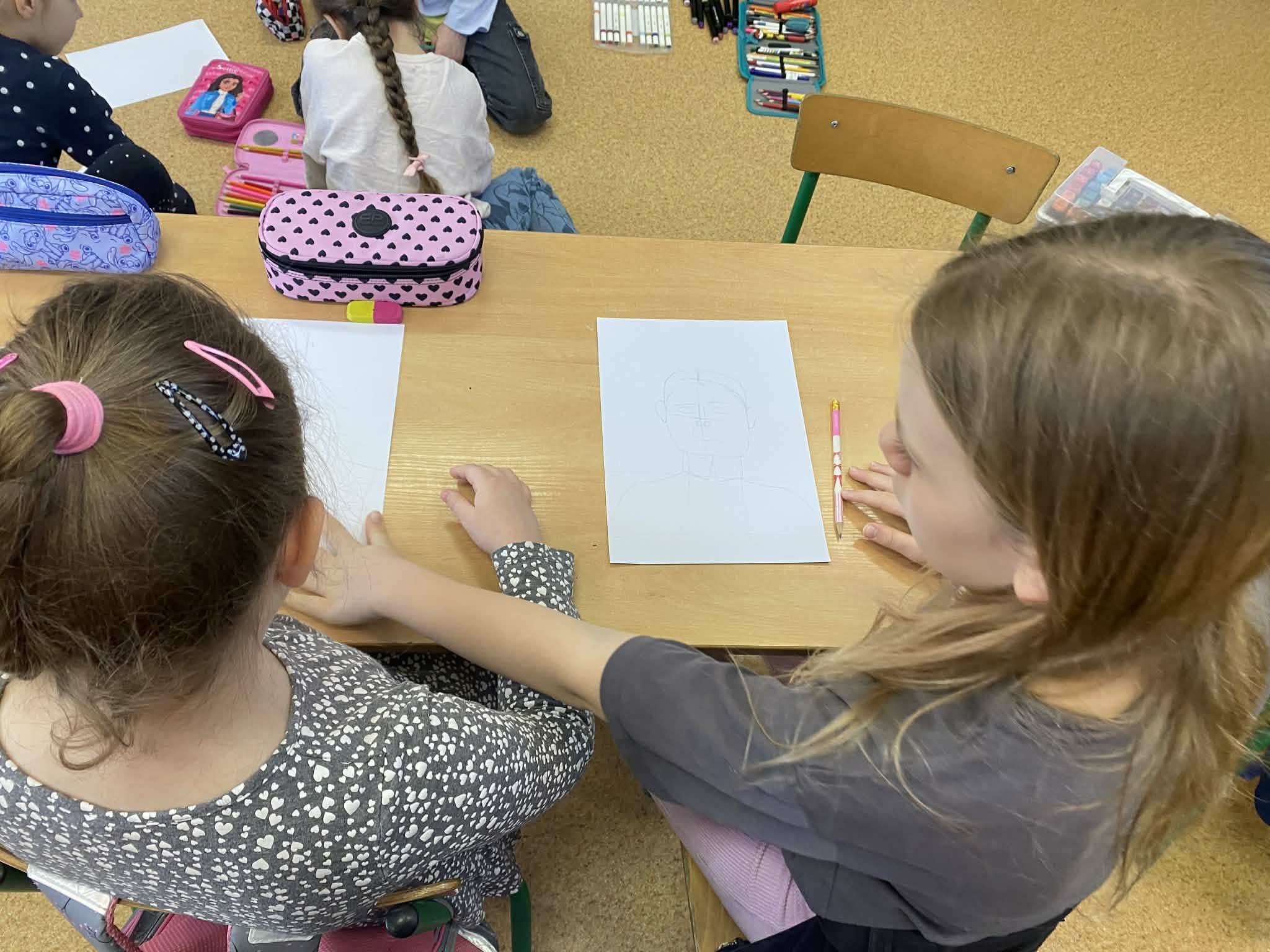 Razem z klasą 5a pierwszaki rysowały portrety naszej patronki – powstały niezwykłe, kolorowe i bardzo staranne prace, które można podziwiać na holu.