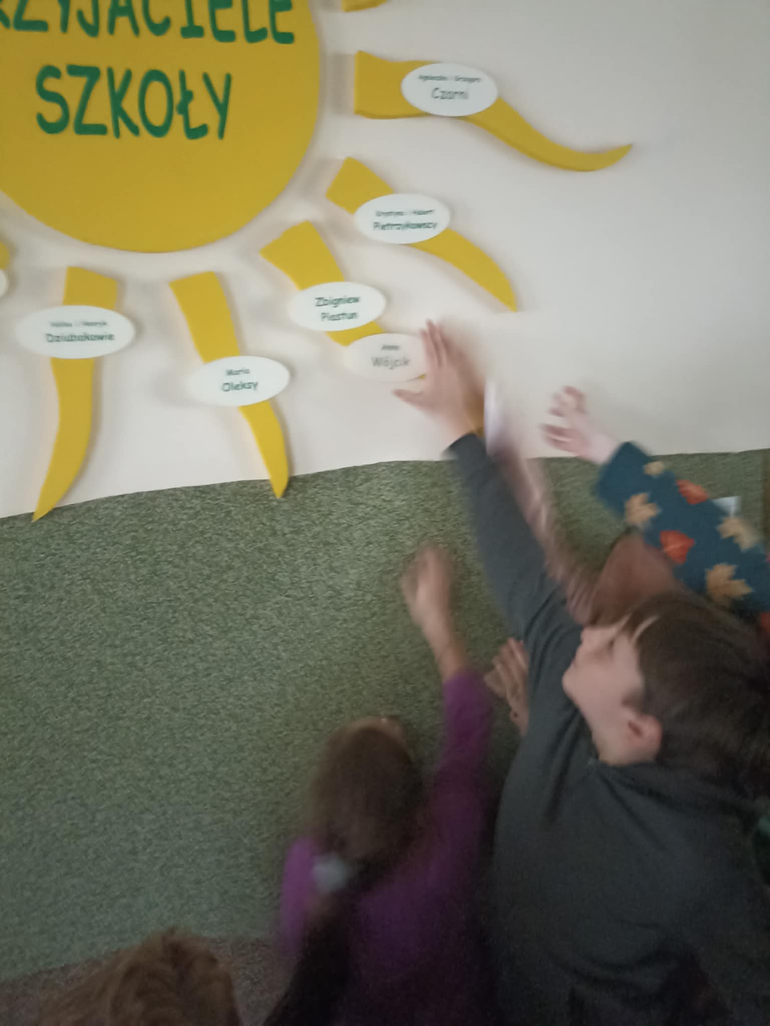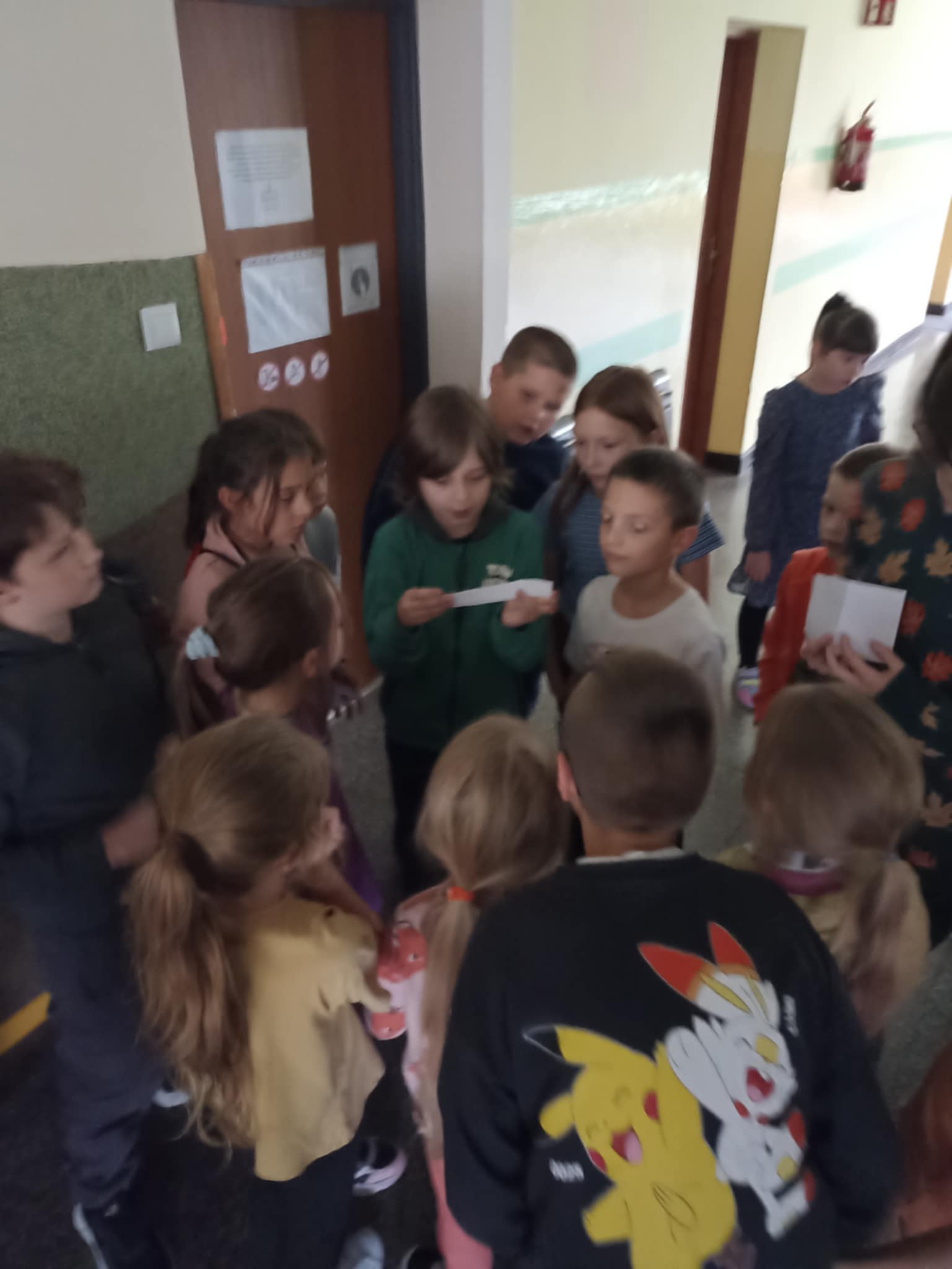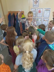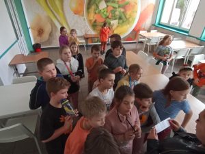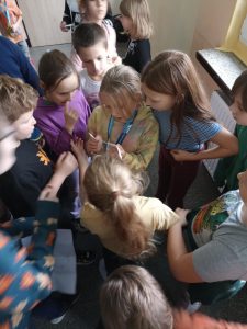 Podczas szukania dzieci rozwiązywały zagadki, które miały elementy języka angielskiego.