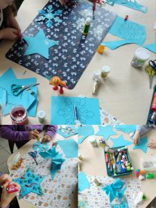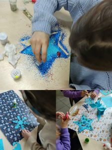 Choć do kalendarzowej zimy zostało jeszcze trochę czasu, u nas już zagościły zimowe dekoracje. Uczniowie z zapałem tworzyli swoje własne, niepowtarzalne śnieżynki, które ozdobiły świetlicę.