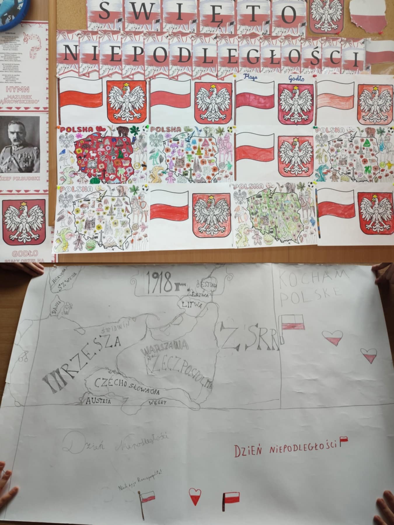 Uczeń klasy III b, Dawid, samodzielnie narysował mapę Polski z roku 1918. Brawo Dawid!