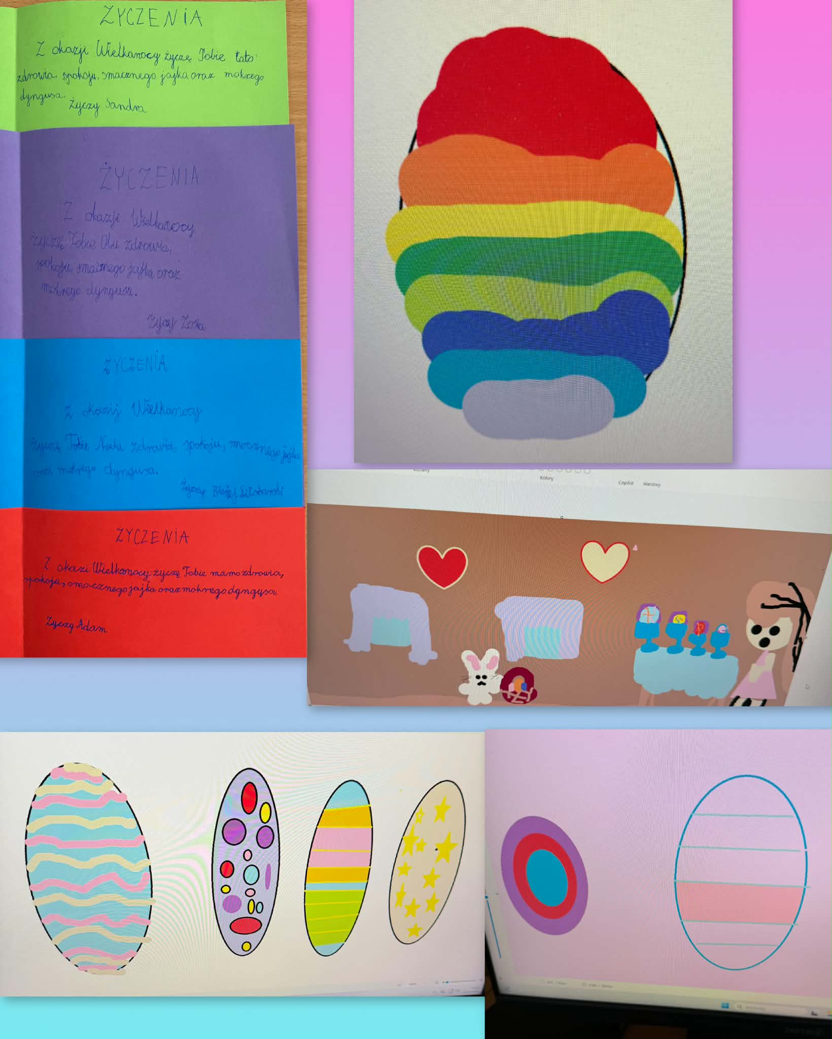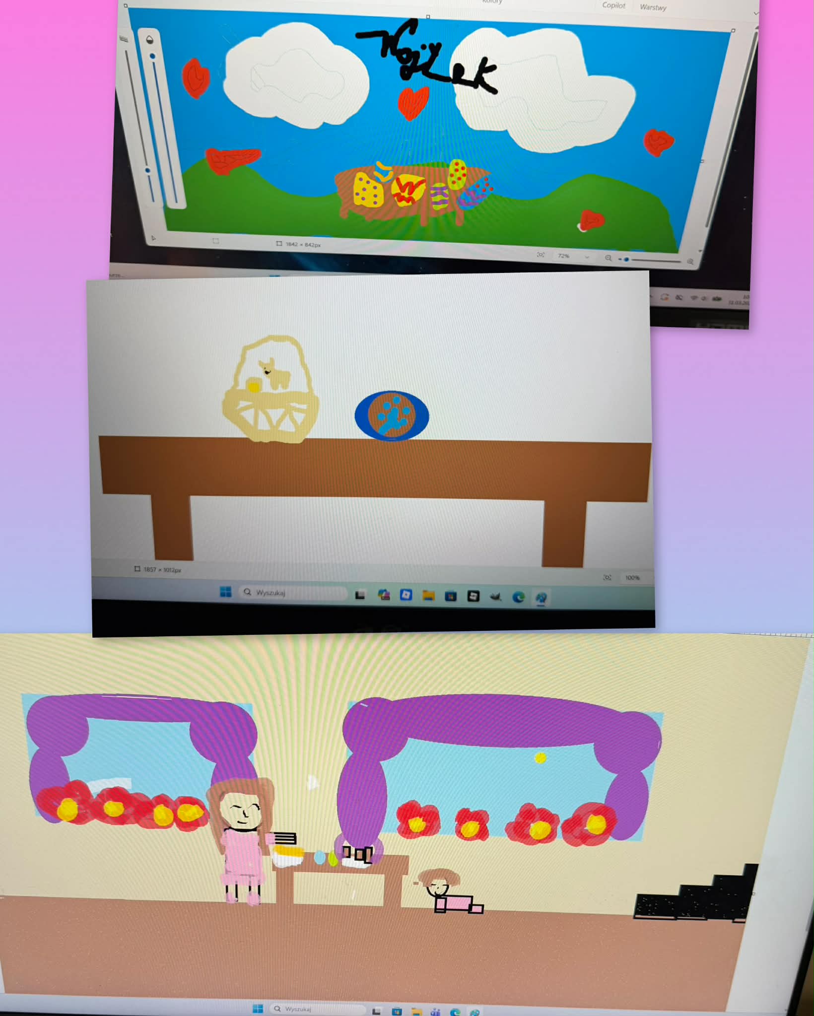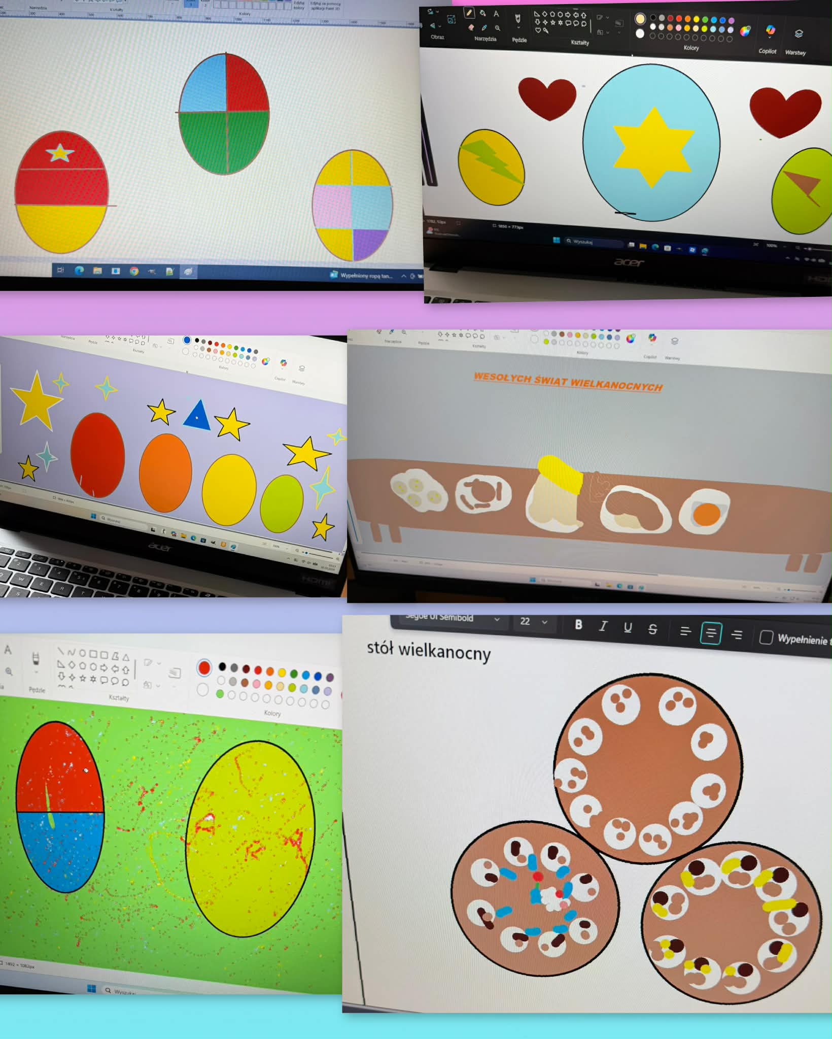 W ramach zajęć komputerowych drugoklasiści pracowali również w programie Paint, gdzie tworzyli wielkanocne rysunki przy użyciu narzędzi komputerowych. Była to doskonała okazja do rozwijania kompetencji cyfrowych oraz łączenia tradycyjnej tematyki świątecznej z nowoczesnymi technologiami.