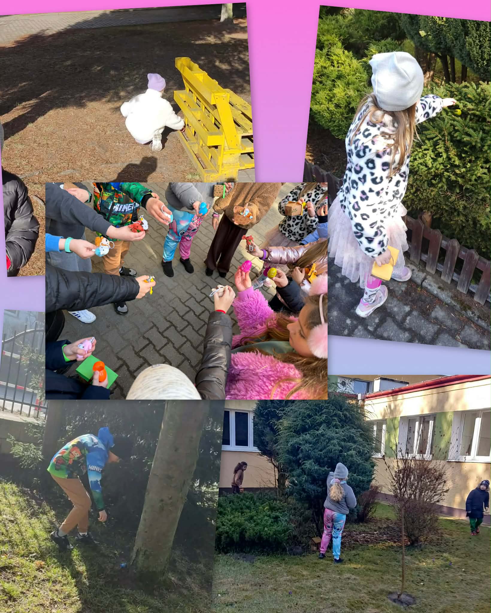 Na zakończenie odbyła się pełna emocji zabawa – poszukiwanie jajeczek ukrytych na terenie szkoły . Dzieci z entuzjazmem brały udział w poszukiwaniach, wykazując się spostrzegawczością i umiejętnością współpracy. Zabawa dostarczyła wiele radości i pozytywnych emocji.