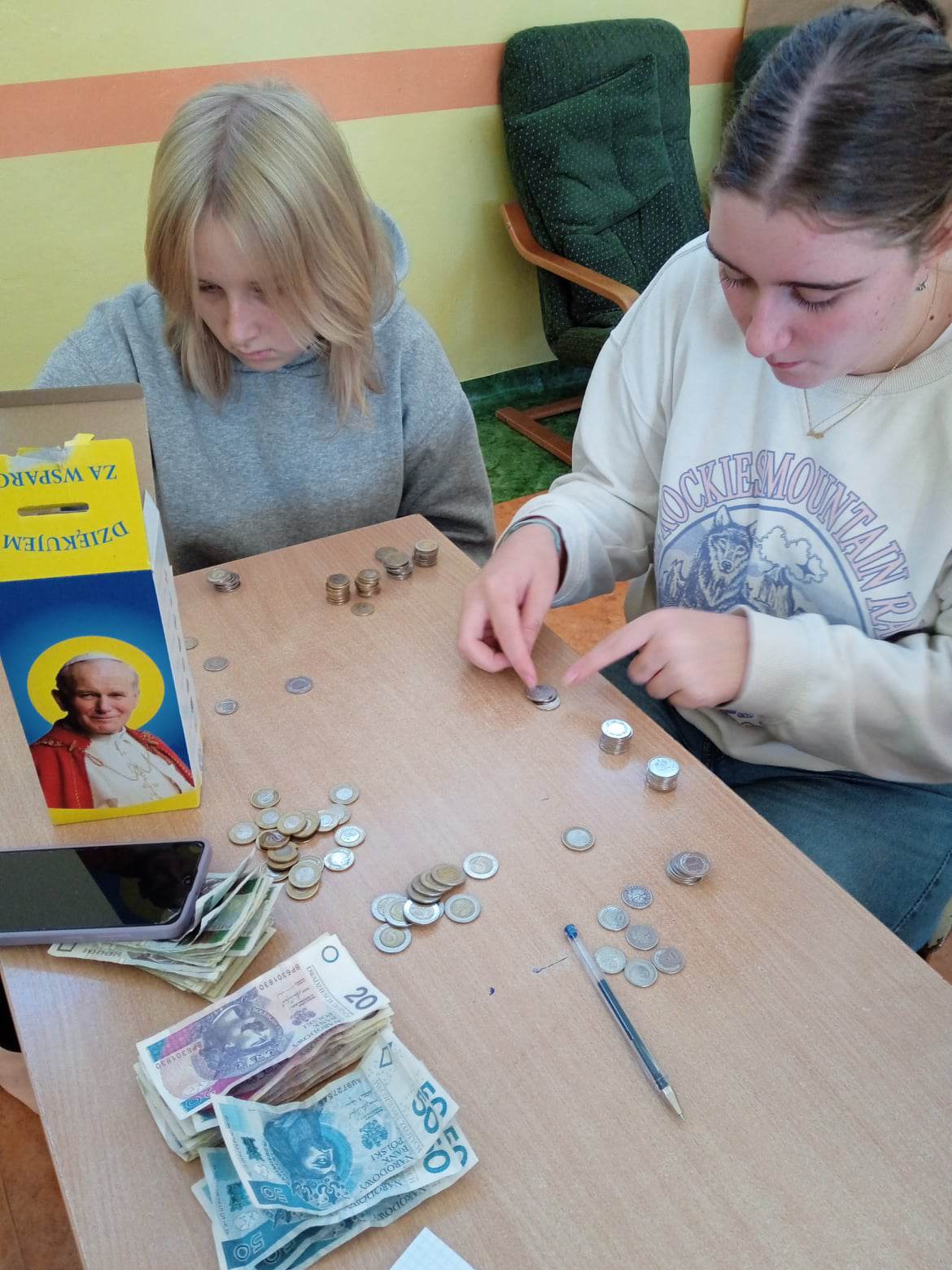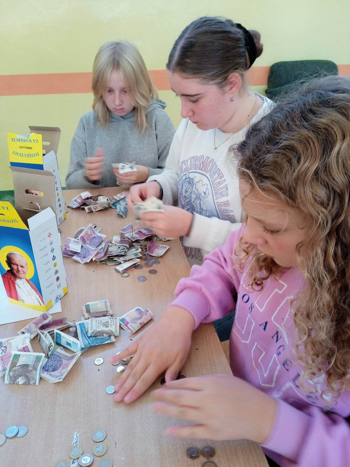 W tym roku zebraliśmy 1577,35. Kolejny raz uczniowie łączyli wolontariat i umiejętność liczenia.