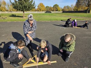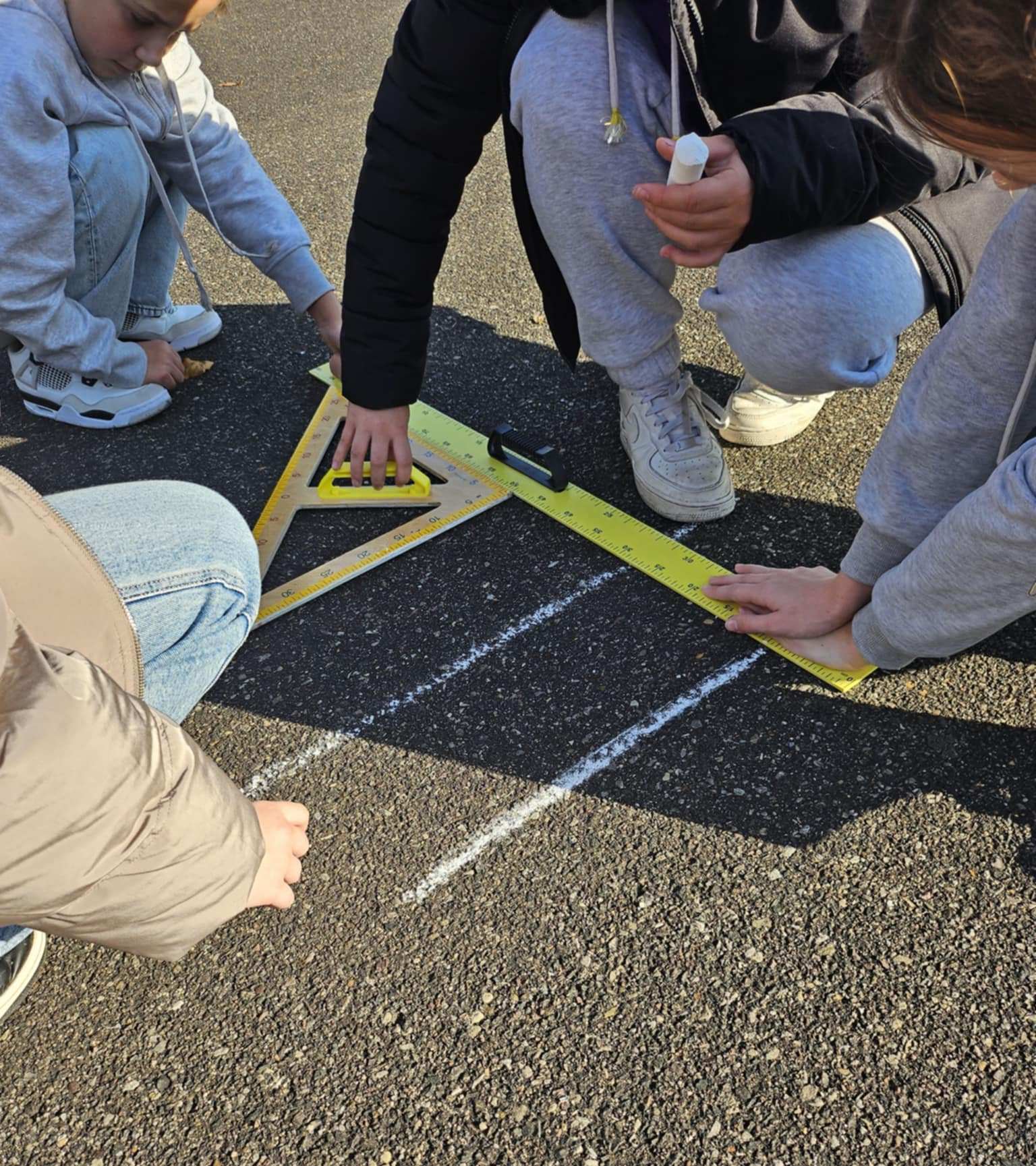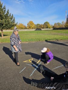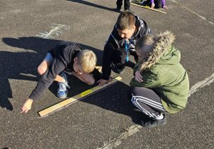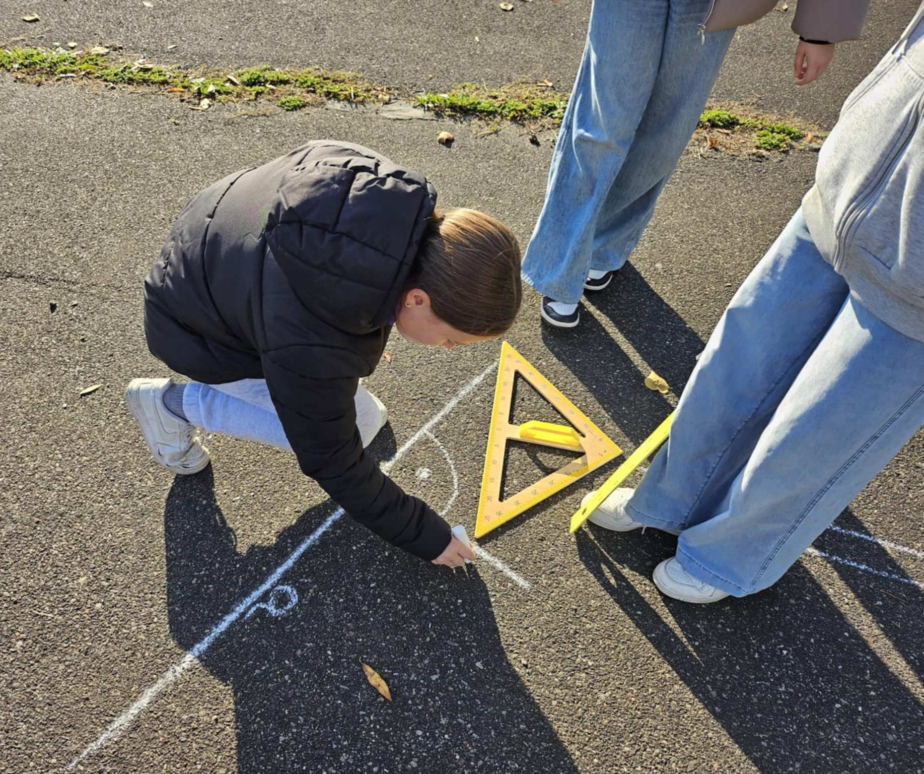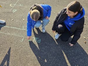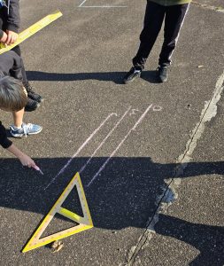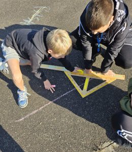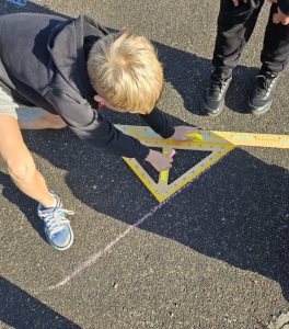Uczniowie klasy szóstej rozpoczęli swoją przygodę z figurami geometrycznymi na zajęciach z matematyki i biologii na świeżym powietrzu!
