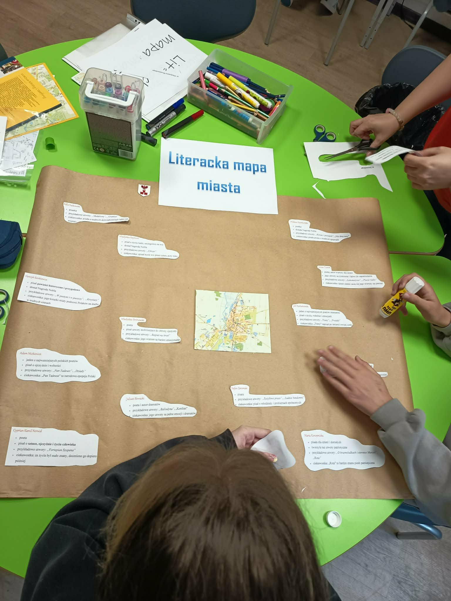 Uczniowie klas 7, w ramach Narodowego Programu Rozwoju Czytelnictwa, zrealizowali wyjątkowy projekt – Literacką Mapę Miasta.