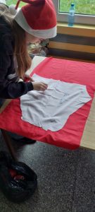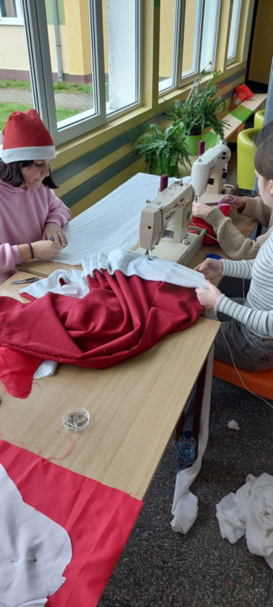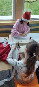 Przez cały zeszły tydzień uczyły się szycia na maszynach, a zdobyte umiejętności wykorzystują przy tworzeniu stroju „Pani Mikołajki” oraz świątecznych serduszek.