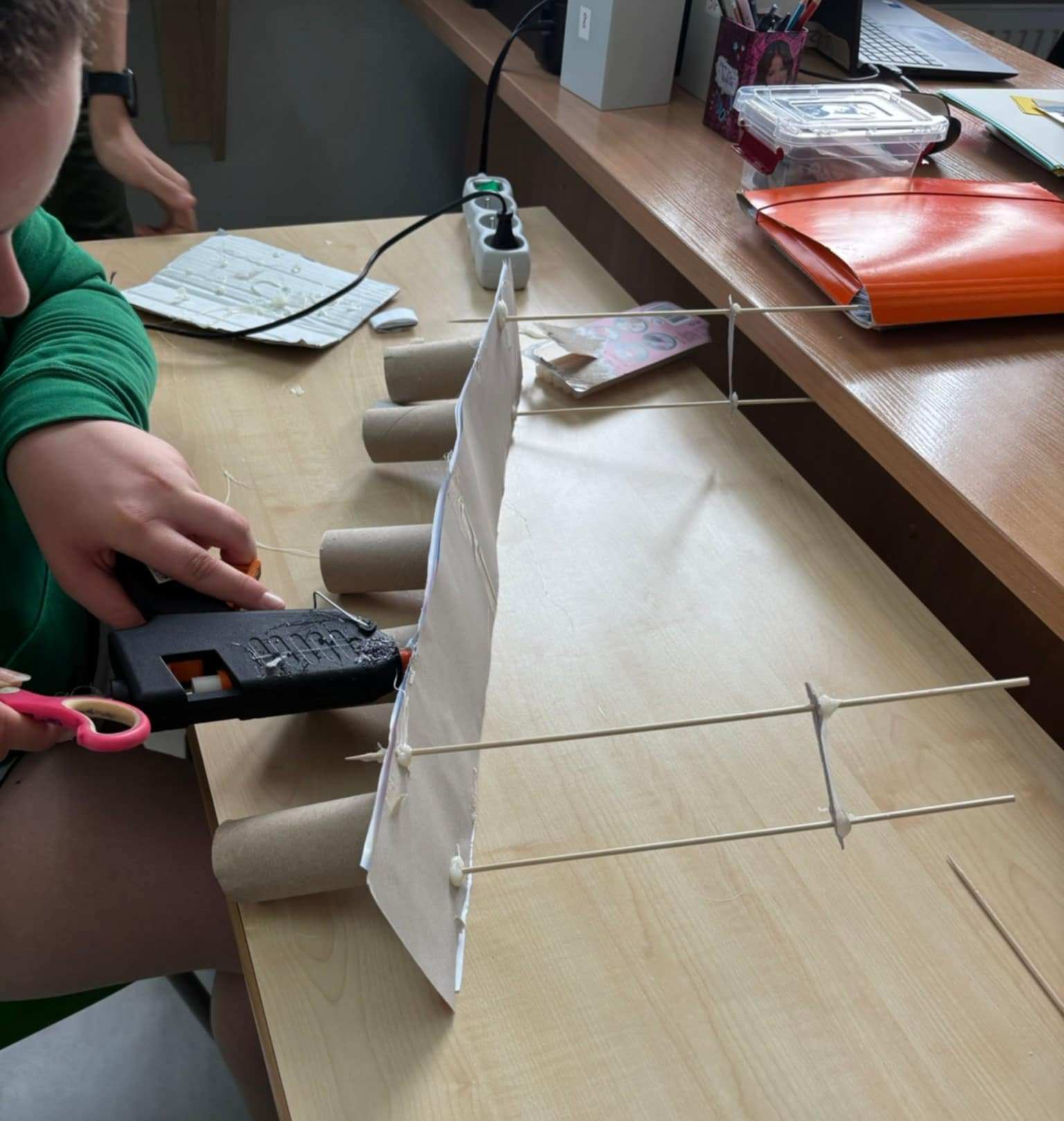 Na lekcjach plastyki uczniowie klas piątych wcielili się w rolę młodych inżynierów i architektów! Ich zadaniem było zaprojektowanie i zbudowanie modelu mostu – od pomysłu aż po testy konstrukcji.