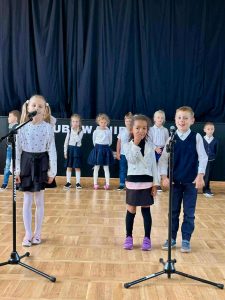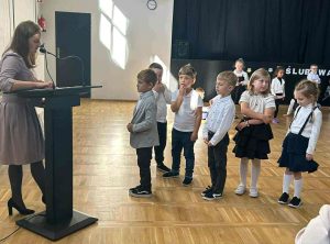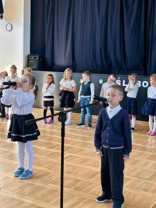 Podczas uroczystości dzieci z ogromnym zaangażowaniem zaprezentowały piosenki i wierszyki. Na zakończenie części artystycznej przemówiła Pani Dyrektor, dziękując dzieciom i wszystkim obecnym za wspólne świętowanie.