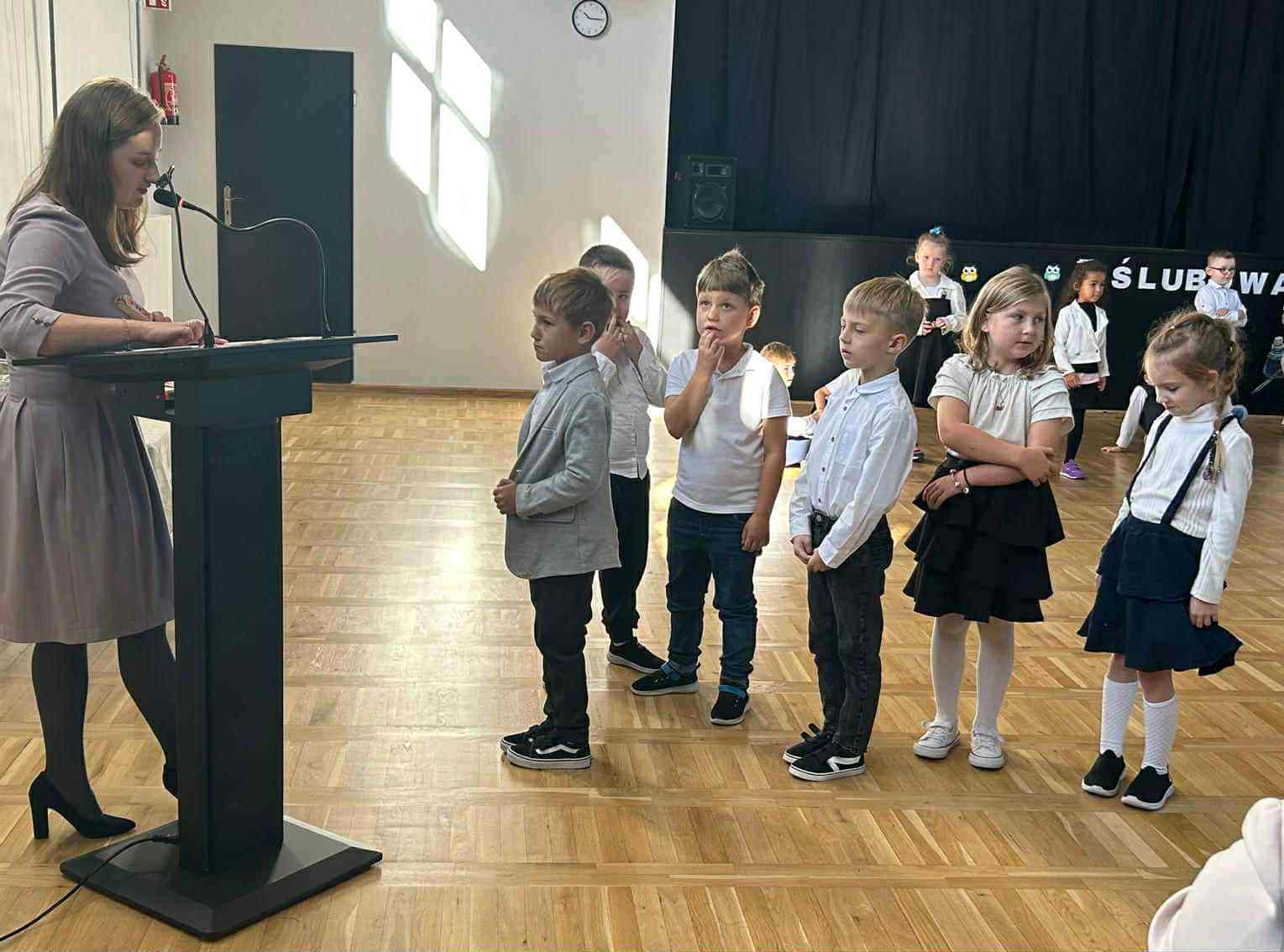 Wśród zaproszonych gości byli rodzice oraz uczniowie Szkoły Podstawowej nr 1. Dla wielu dzieci było to miłe zaskoczenie – spotkały znajomych z przedszkolnych ławek.