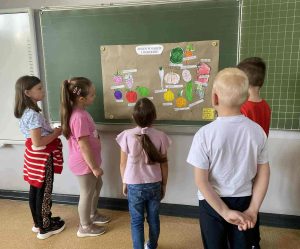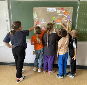 - na koniec w grupach tworzyły plakaty, które podsumowały ich owocowo-warzywną wiedzę.