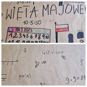 Z okazji Świąt Majowych uczniowie klasy czwartej realizowali projekt edukacyjny: „Święta Majowe w liczbach”.