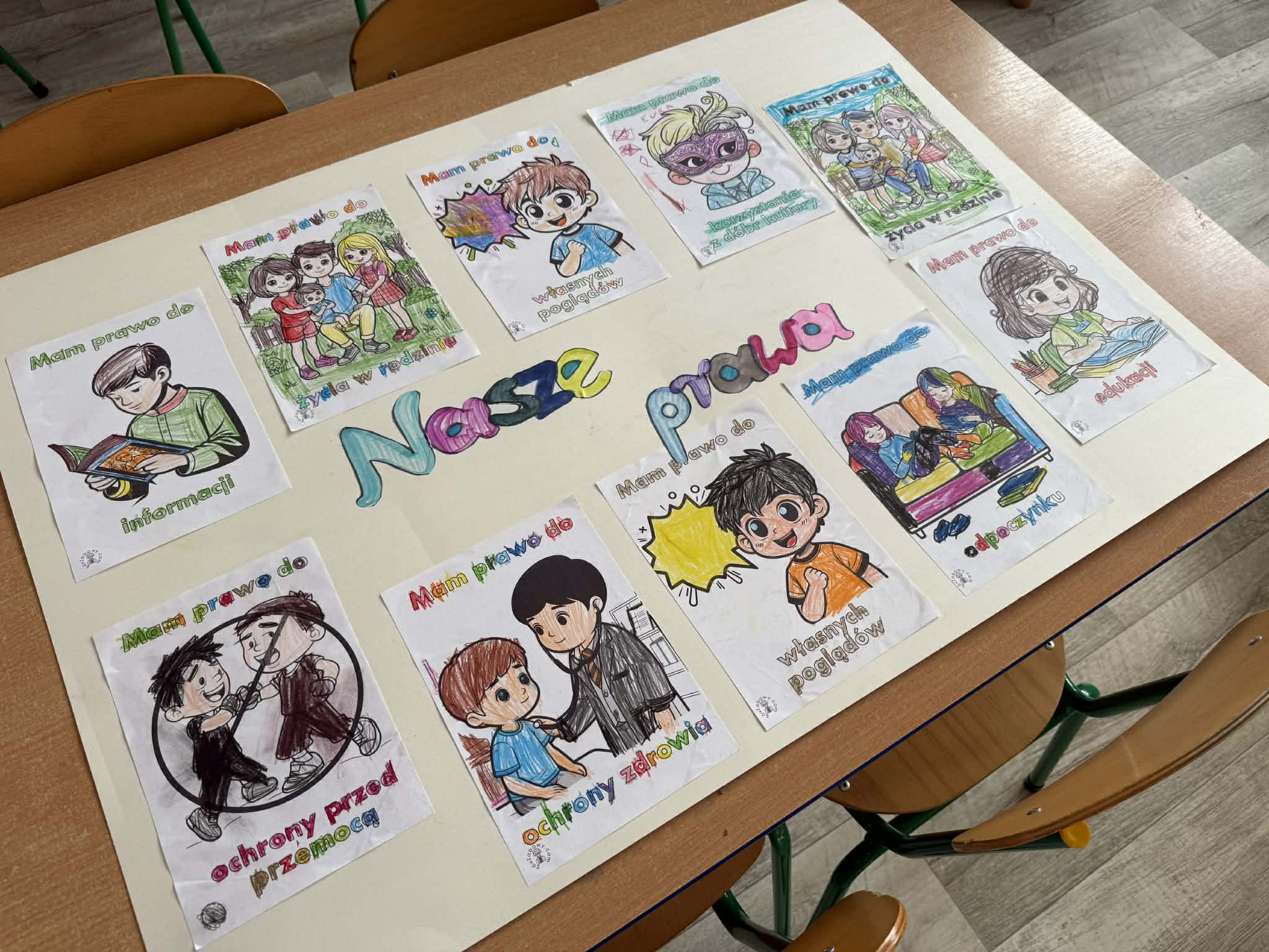 - pracowały w grupach, tworząc piękne plakaty przedstawiające prawa dziecka ich oczami. Było dużo kreatywności, współpracy i radości!